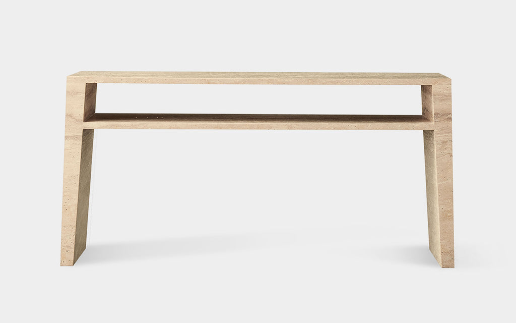 • Travertine stone top exudes natural elegance and durability.