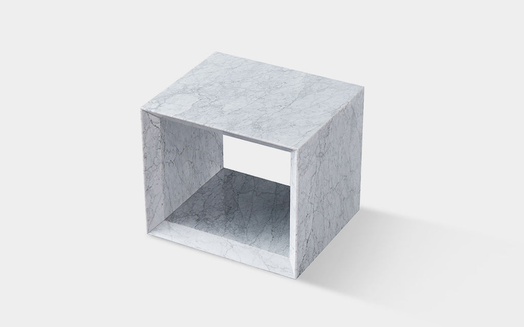 • Balanced combination of marble and wood for a chic centerpiece.