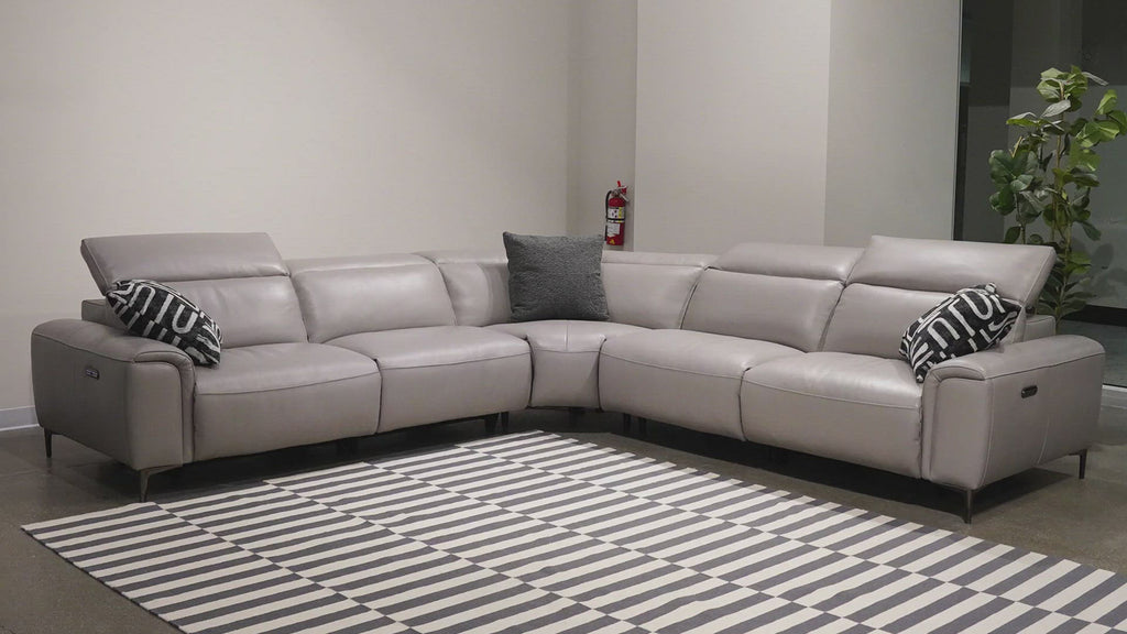 Create your very own modern reclining sectional. It features 2 power recliners and 4 adjustable headrests. Relax blissfully with family and friends.