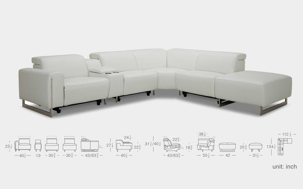 Made to be long-lasting and durable. This modern sectional has a lift up storage space in the console table that comes with 2 USB ports and 2 hidden outlets. This modular sectional with ottoman has stainless steel legs that provide comfort and stability. A perfect piece for any contemporary home and the ideal sectional when it comes to spending time with friends and family. Modular sectional meets modular storage.