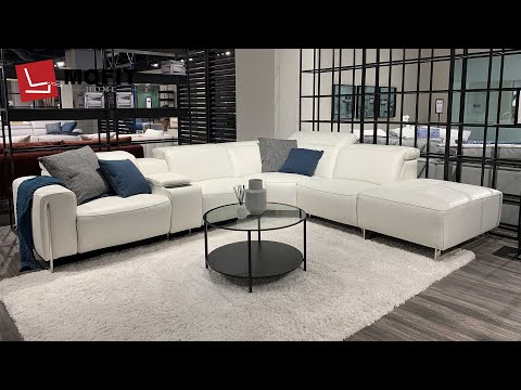 The Lily Modern Motion Recliner with Ottoman is a beautifully designed sectional couch with recliner that features your choice in power recliner chair and adjustable headrests to create a modern sectional recliner just for you. It features a recliner, adjustable headrests, and a convenient small console table.