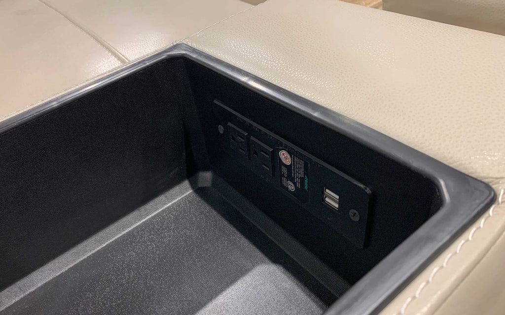 - Hidden USB Port Between the Power Buttons in Armrests for Convenience