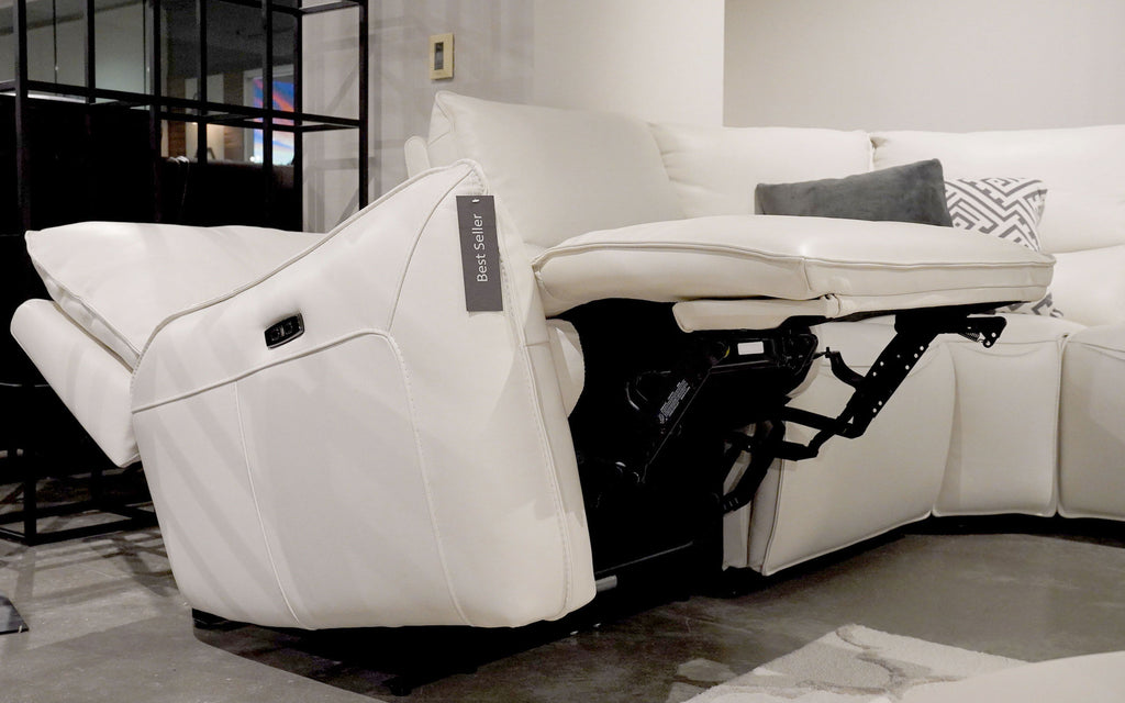 The Astilbe Modern Motion Reclining Sectional. Introducing the Zero Gravity Collection from MoFit Home. This modern reclining sectional allows you to experience the feeling of weightlessness. A simplistic design created from combining this l shaped reclining sectional with a matching recliner table makes this a one-of-a-kind media sofa. Lay fully back in this electric recliner couch, as the recliner slowly unfolds allowing you to sink into this deep sectional. Eventually, this modern leather recliner sofa will become a recliner sofa bed.