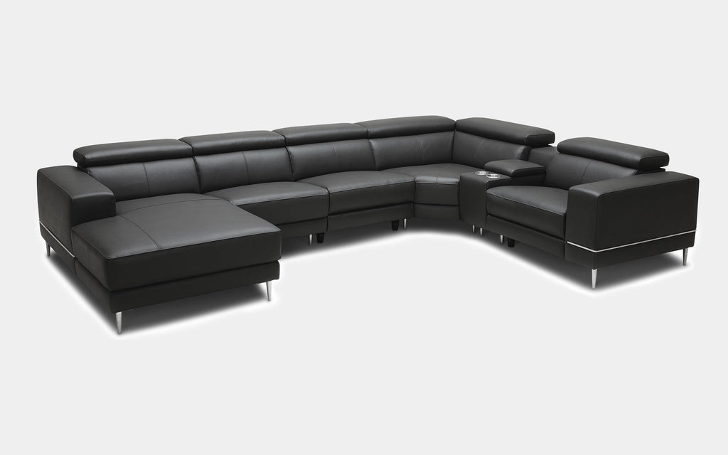 The Dahlia Modern Motion Recliner is a beautifully designed sectional couch with recliner that features your choice in power recliner chair and adjustable headrests to create a modern sectional recliner just for you.