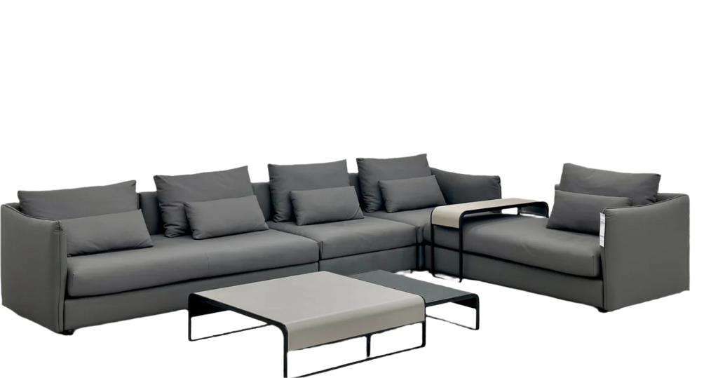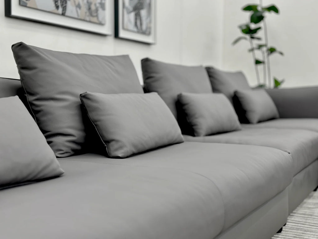 The Quanie Sectional Set offers both style and comfort, making it an ideal choice for contemporary living spaces. It's upholstered in high-performance top-grain leather that is not only durable but also simple to maintain. The seating is designed to support both your head and back, ensuring comfort. This sectional is a practical and convenient addition to any modern household.