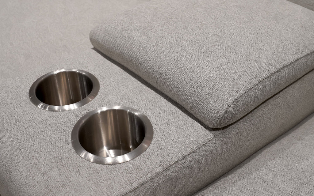 The Zafferano Modern Motion Reclining Sectional makes relaxing with family and friends all the more enjoyable. The conveniently placed Console Table comes with 2 cupholders, a storage space, 2 USB ports, and 2 outlets.