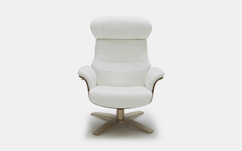 This modern living room furniture features adjustable headrests and backrests as well as an ottoman footrest making it a swivel recliner with ottoman. The shaped foam is molded directly onto the frame to offer you the best comfort. The soft foam padding is covered by an even softer layer of polyester fiber or genuine top grain Italian leather.